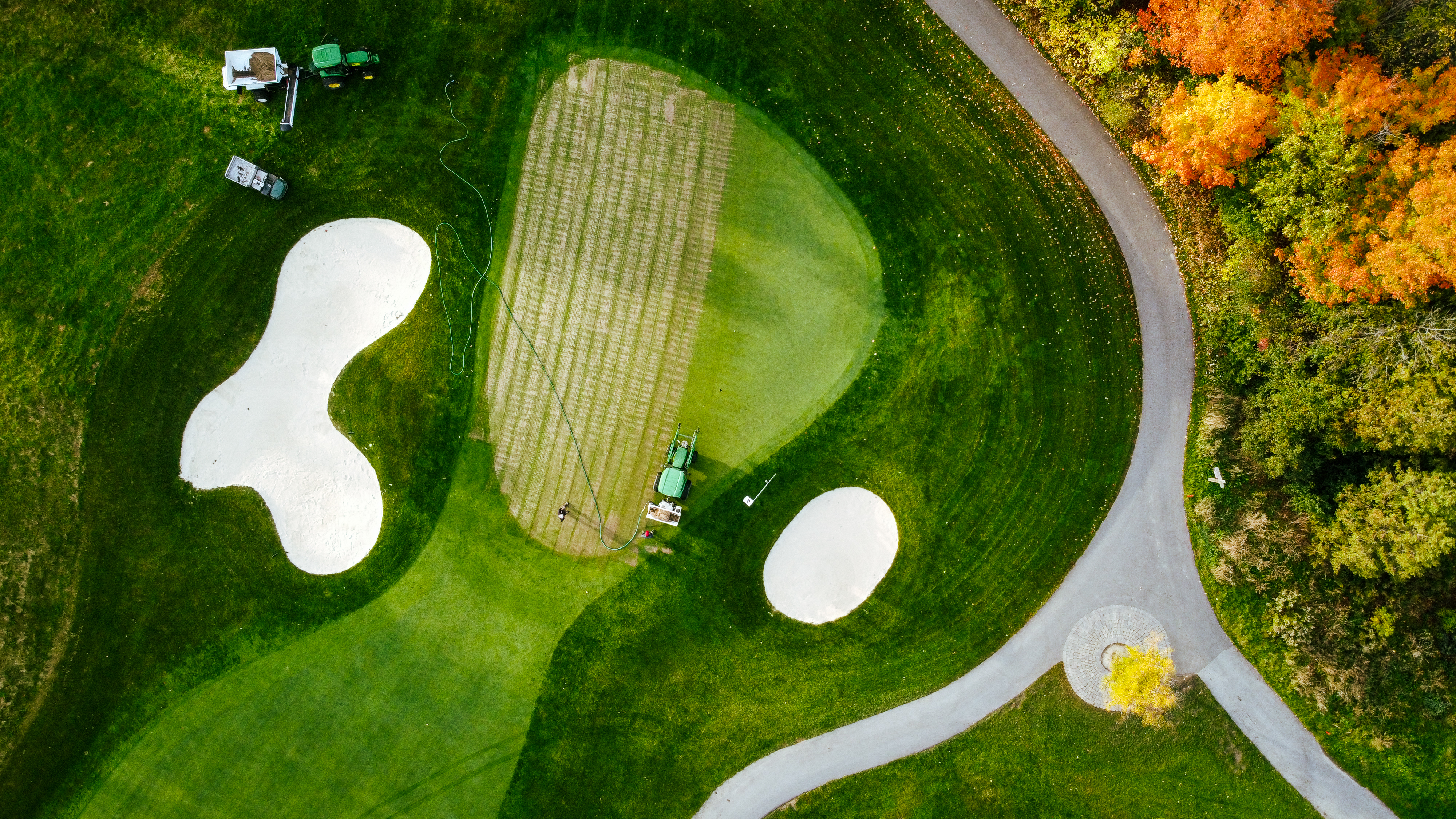 A major problem with pulling cores with traditional aeration is that it is difficult to fill the holes tightly. Once the cores are pulled, the greens are top dressed and the material is dragged into the holes, but it is not compact or firm. Over the course of a day or two following the process, rainfall, foot traffic and other factors cause the sand to settle leading to an uneven surface. With sand injection, the greens are compact, firm, fast, and ready to go the moment they are finished. While the surface may not be perfect, as it will take some time for the roots to grow into the new material, Sand injection leaves behind a much more playable putting green for players with much less hassle for the superintendent.