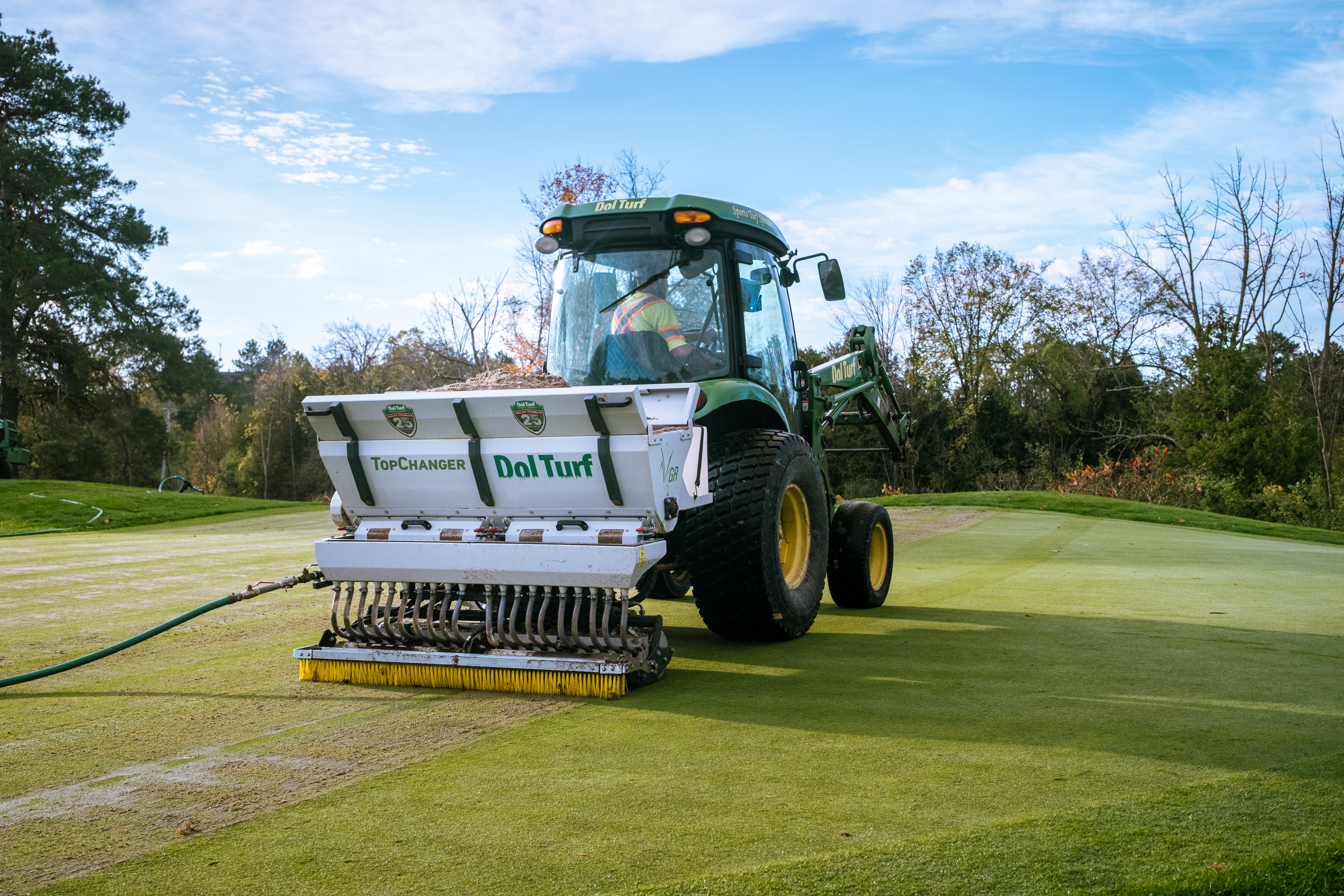Aeration is primarily used to remove soil compaction, promote root growth, and improve drainage. Organic matter that is too dense will act as a sponge, holding water at the surface. Excessive organic matter can also hinder root growth, decrease soil oxygen levels, promote disease, and ultimately lead to turf failure. Additionally, excessive organic matter can cause soft surfaces that are prone to footprinting, ball marks and other irregularities. Topdressing and aeration are the best ways to manage organic matter and keep putting surfaces firm and smooth.